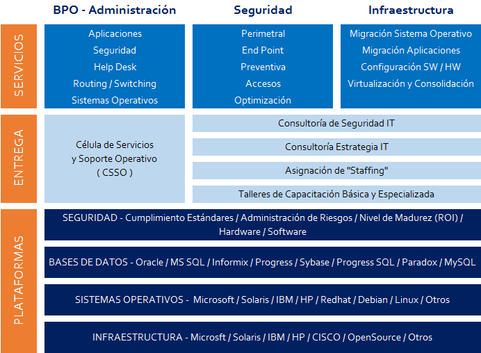 CONSULTORIA . Negocios . Tecnología de Información . Administración . Operaciones . Desarrollo y Cambio Organizacional . |